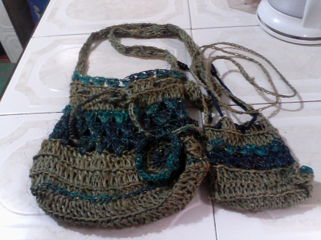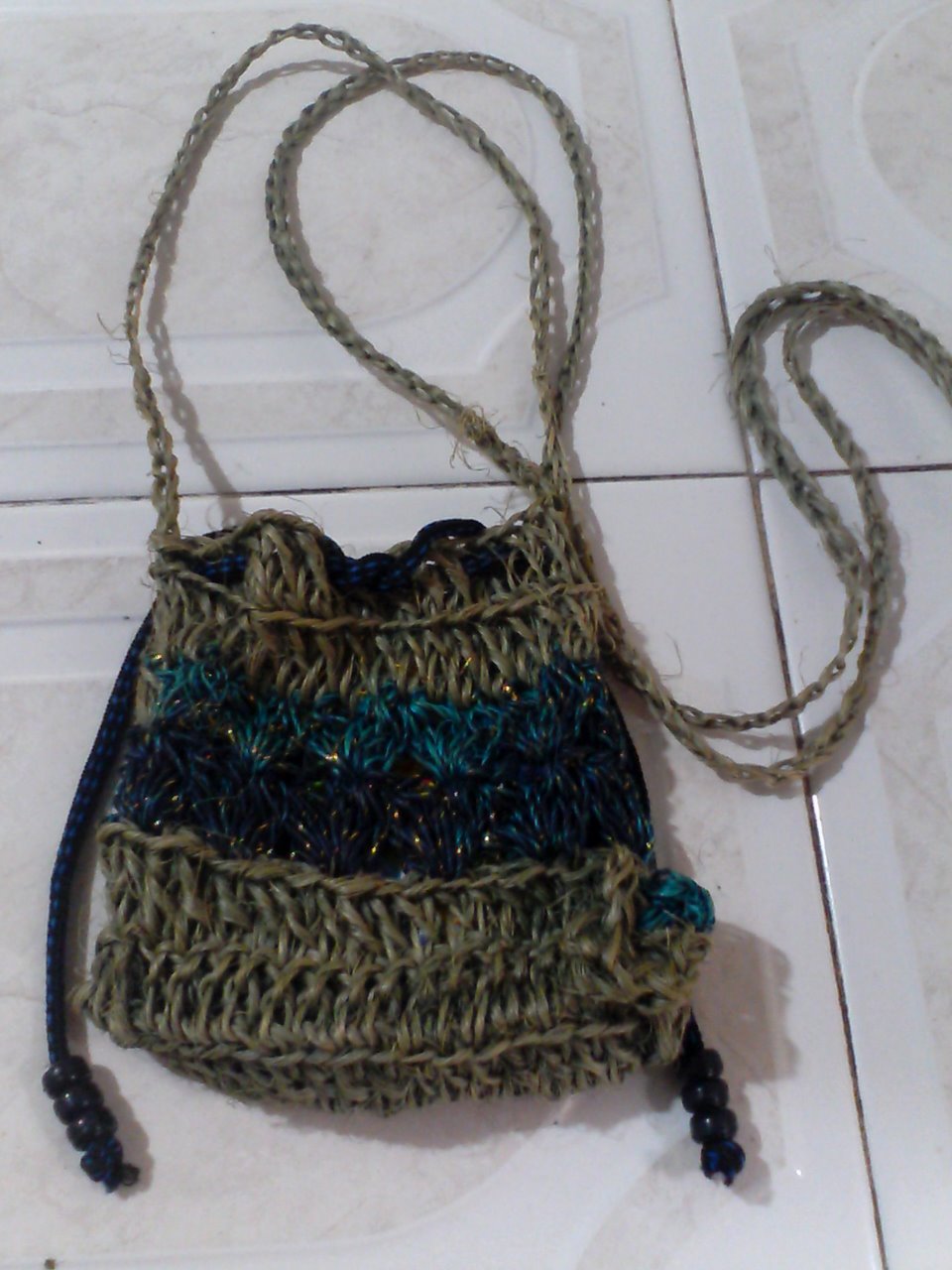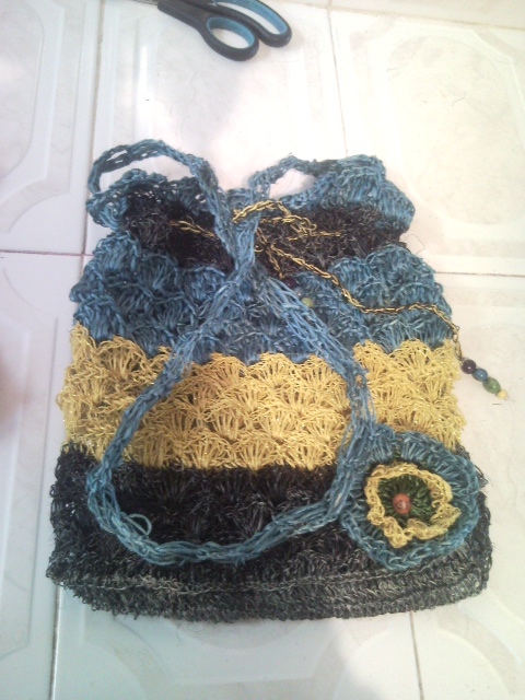 Bolso elaborado en cabuya con hermosos colores como verde, azul oscuro y amarillo,